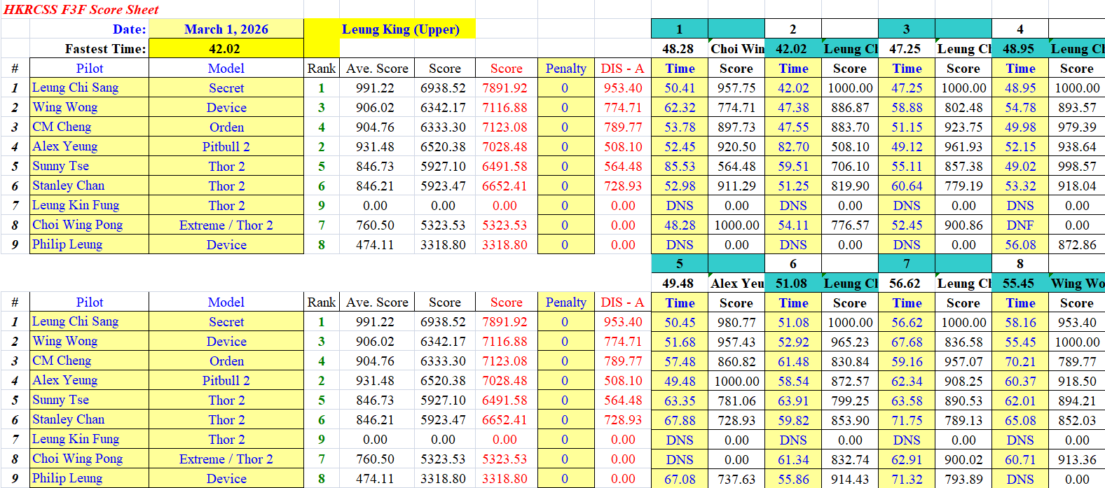 Hong Kong F3F League 2026, Match 3 - March 1, 2026