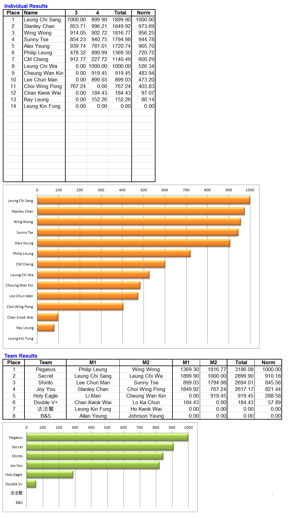 Individual and Team Results: