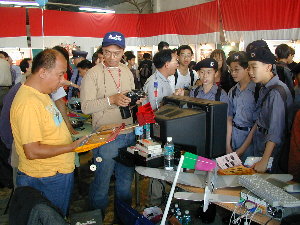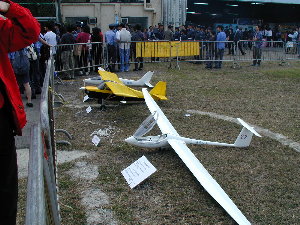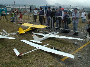 The Hong Kong Aviation Club organized an open day and exhibition on Saturday, 23 February, 2002. The exhibition is opened to air cadets and the general public who are interested in items related to aviation. R/C model aircraft flying demonstrations were featured in the exhibition. HKRCSS is honoured to be invited as exhibitor for displaying r/c gliders and introducing the r/c soaring activities to the visitors. Some beautiful gliders including Fox, Ellipse III Cam and a tow plane from Paul Wong, HKRCSS's function chair responsible for training, were on display in the aviation club's venue in old Kai Tak Airport. The open day has attracted many visitors from the public generally interest in aviation. A computer r/c flight simulator was set up by HKRCSS to let visitors to have a taste of r/c soaring which was proved to be very attractive to the kids. With complement of video shows and demos, this event is definitely a success. Thank you all for those involved in making this exhibition memorable. | |||