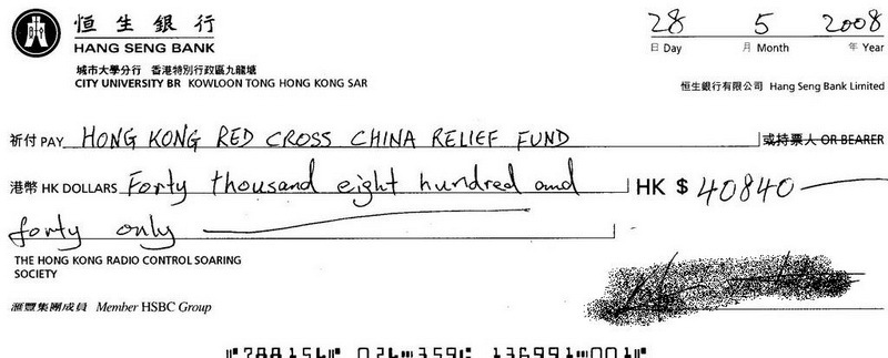 of donation money. A cheque