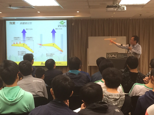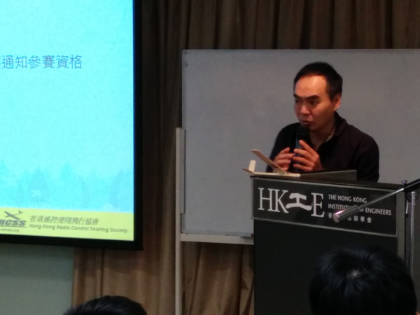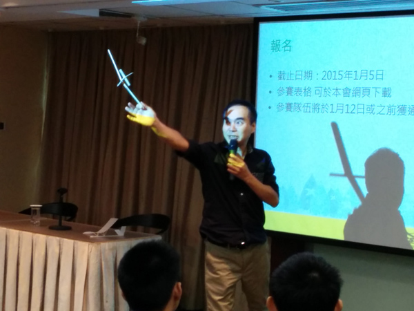 由於很多同學都是首次接觸模型滑翔機,所以主辦單位特地舉辦了兩場模型滑翔機設計教學,簡單介紹飛行原理和製作要點,還有比賽規則等,由本會會長Donny Leung和秘書CM Cheng負責,