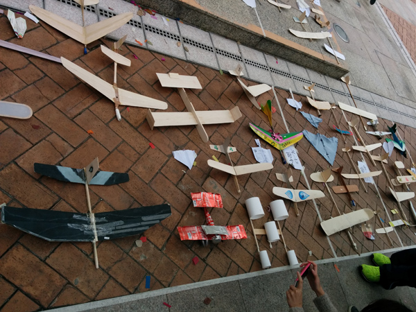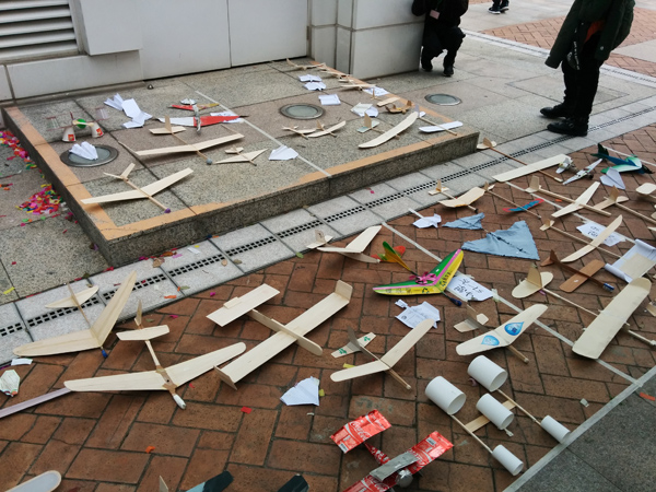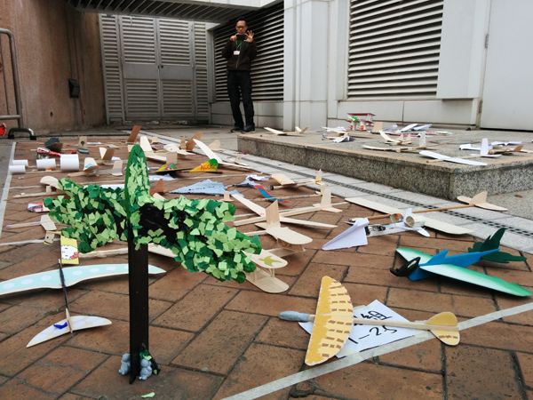 所以飛機必須要用可以循環再用的物料製作,在同學們的參賽作品中,可以看見他們都花了很多心思,用不同的環保物料來做飛機,十分難得!