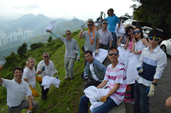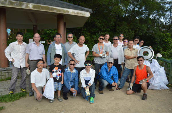 非常炎熱,各機友們雖然大汗淋灕,但大家仍然幹勁十足。斜坡上除了玻璃樽外,還有數之不盡的垃圾,如頭盔,水桶,車軚呤等等......在清理垃圾的時
