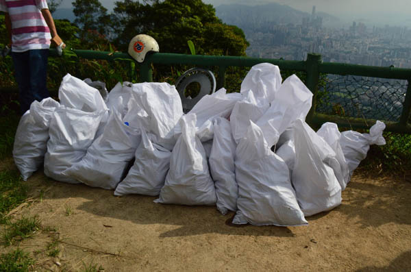 候,途人們得悉這次行動的目的,都熱心幫助,把一袋袋拾起來的垃圾幫手搬到垃圾桶旁邊,這次行動共收集了二十多袋玻璃樽,比想像中的多。本會為感謝機友們