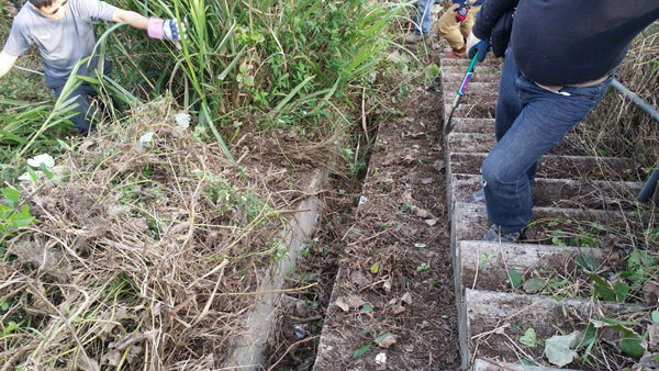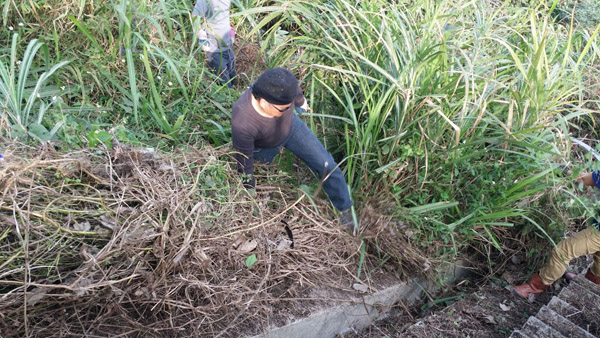。活動進行時,各人都表現得非常落力,大家都盡力去把雨水渠旁邊的枯草清走。由於參與人數眾多,活動亦進行得非常順利,兩條雨水渠在半小時內已經重見天