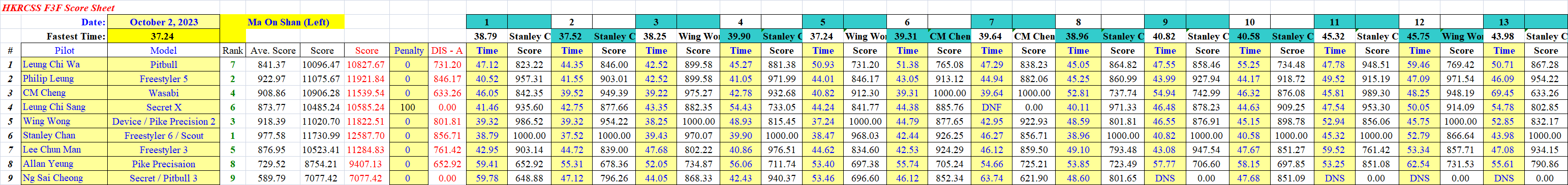 Hong Kong F3F League 2023, Match 10 - October 2, 2023